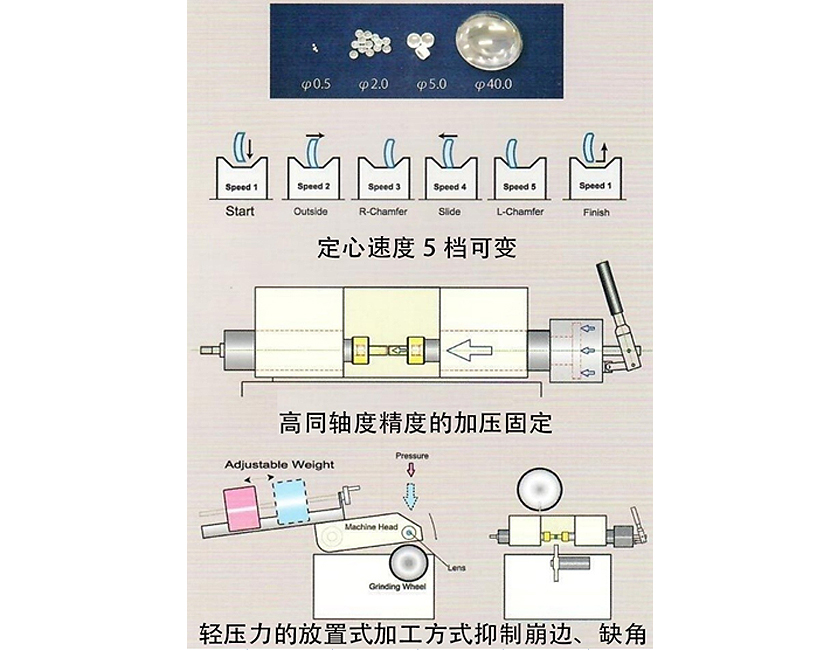 ● 與傳統(tǒng)定心機(jī)相反,采用砥石固定,鏡片移動(dòng)的加工方式,大大提高了加工時(shí)的穩(wěn)定性。